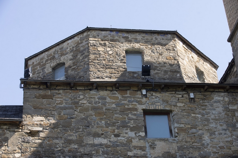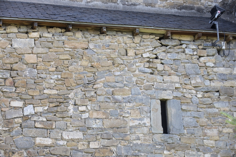 Está realizada en mampostería, salvo algunos paños del campanario, que fueron reparados en ladrillo.