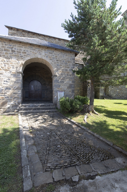 El pórtico se sitúa al final de la nave de la Epístola, en el tramo anterior a los pies. Tiene planta cuadrada, cubierta con tejado a tres aguas, y abre al exterior por la parte frontal en arco de medio punto. Al fondo del pórtico, descentrada respecto a la abertura de este, se abre la puerta de la iglesia, en arco de medio punto con voluminosas dovelas.