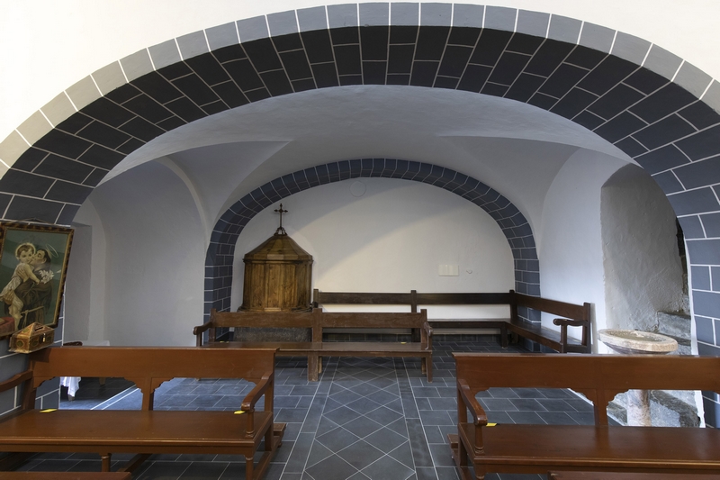 Adosada a la torre y al muro de la Epístola hay una estancia rectangular, con acceso tanto desde el exterior como desde el interior de la iglesia, donde se ubica el arranque de las escaleras del campanario.