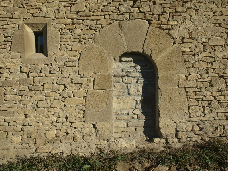 Sobre el dintel de una de las puertas hay una placa de piedra con una inscripción latina que indica que fue erigida "desde los cimientos" por Miguel guallart en 1720, a expensas de fray José Acín, enfermero del monasterio de San Juan de la peña.