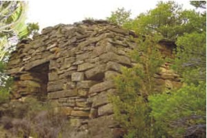 Muros: De piedra seca. Piezas de gran tamaño, algunas trabajadas como en las jambas. Cubierta: Falsa cúpula