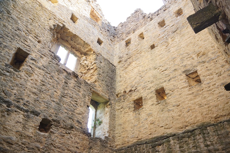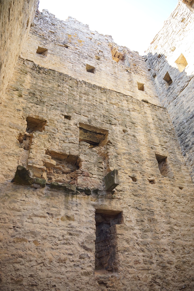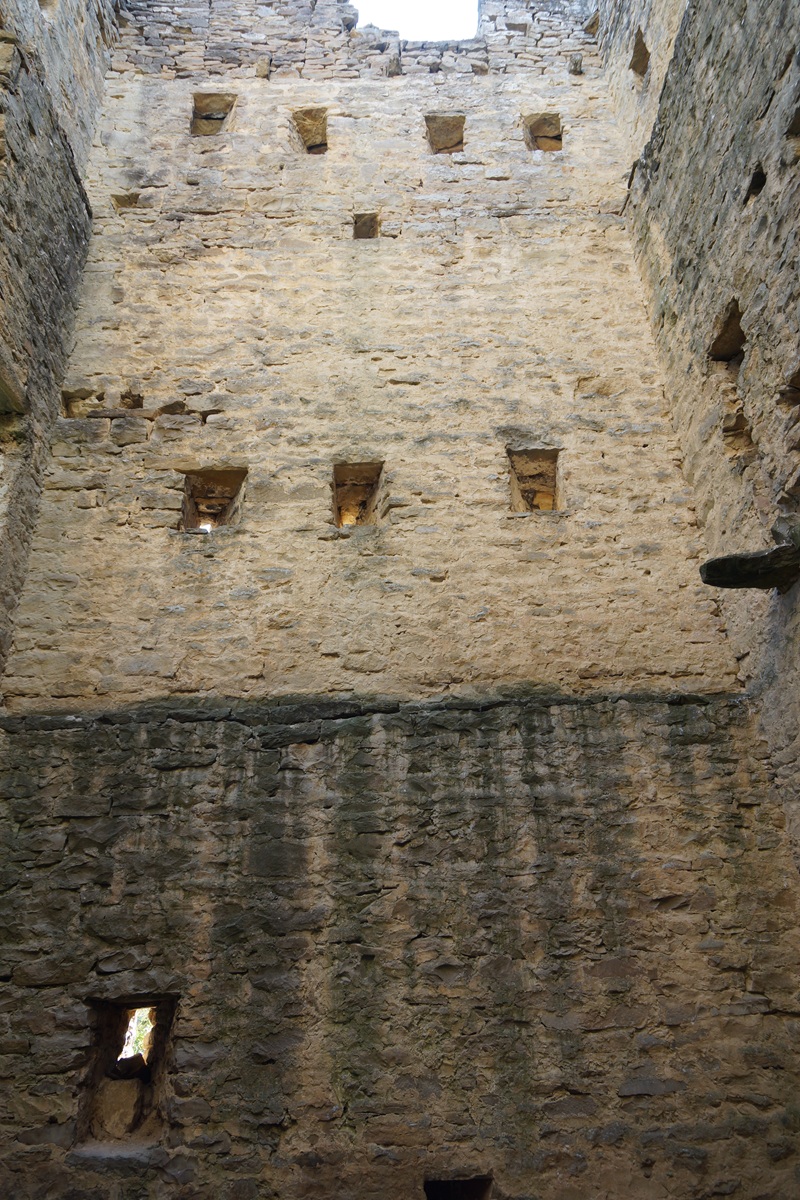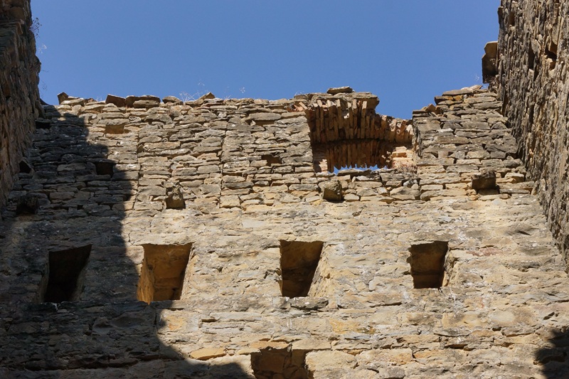 La siguiente planta presenta aspilleras y en la última se observan los mechinales del piso superior que daba acceso al cadalso por vanos de arcos rebajados.