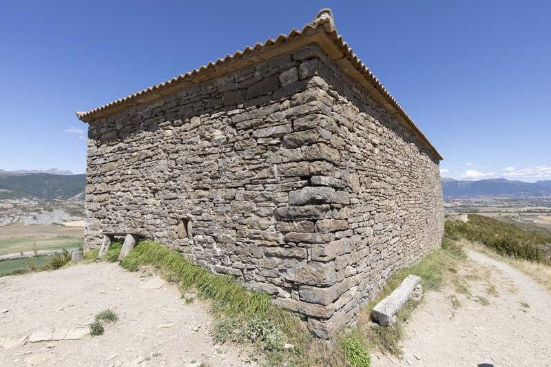 Edificio de planta rectangular orientado de este-oeste y levantado en sillarejo poco trabajado. Carece asimismo de ornamentación exterior y presenta unicamente dos vanos, una pequeña aspillera en el hastial oeste y un óculo en el hastial este, sobre el acceso.