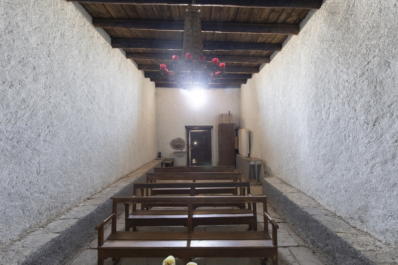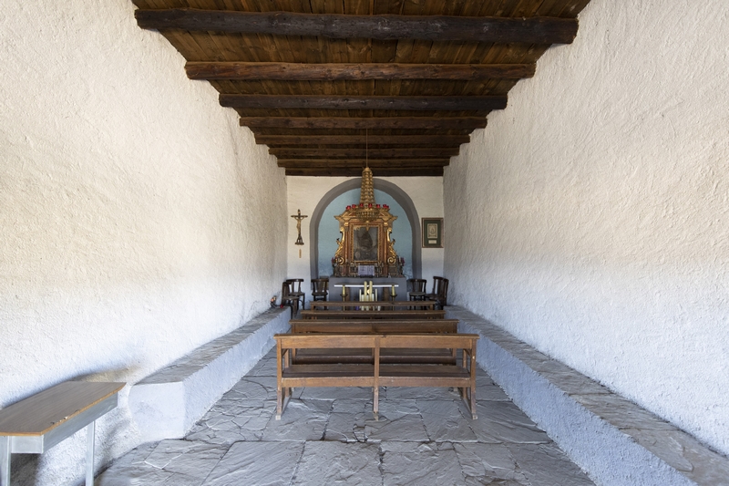 El interior es sobrio y se encuentra revocado en su totalidad careciendo de adornos, en la cabecera se abre una hornacina que acoge el retablo.