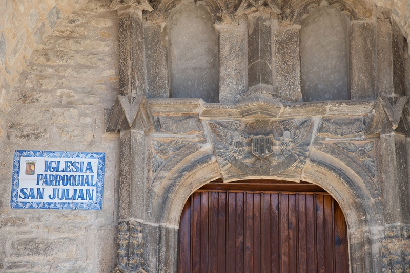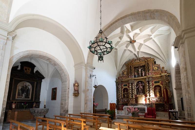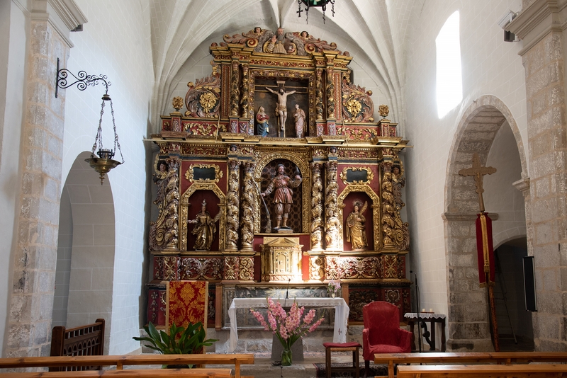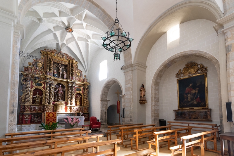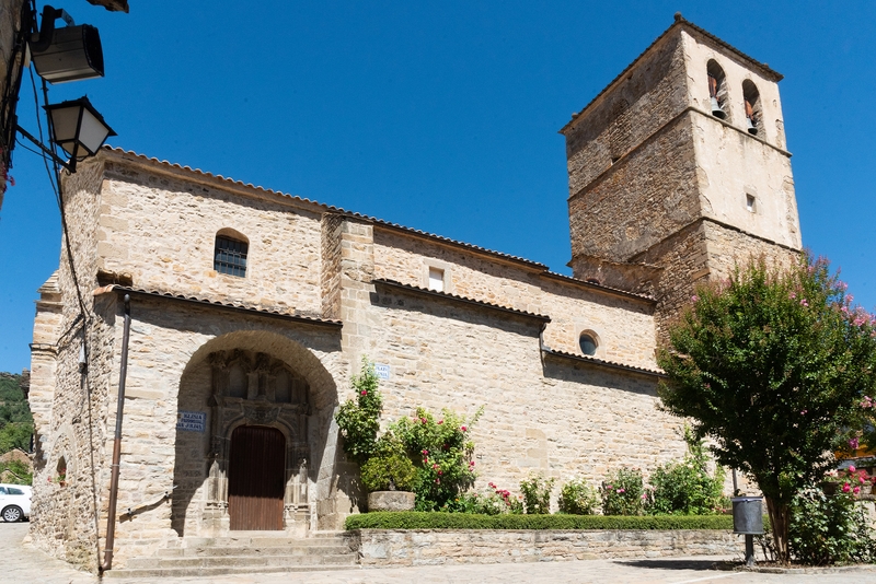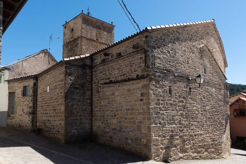 Iglesia de nave única con capillas laterales y testero recto. Su portada se abre en el lado sur, hacia la plaza, y va protegida por un breve pórtico. Adosada a la cabecera se alza la torre, de planta cuadrada. Todo el edificio está construido en sillarejo, excepto algunas zonas de la parte alta de los muros de la nave, que son de mampostería.