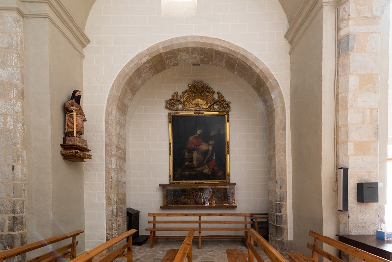En 2004 se produjo el hallazgo de la talla, incompleta, de una Virgen románica tras el actual retablo mayor, barroco (1696).