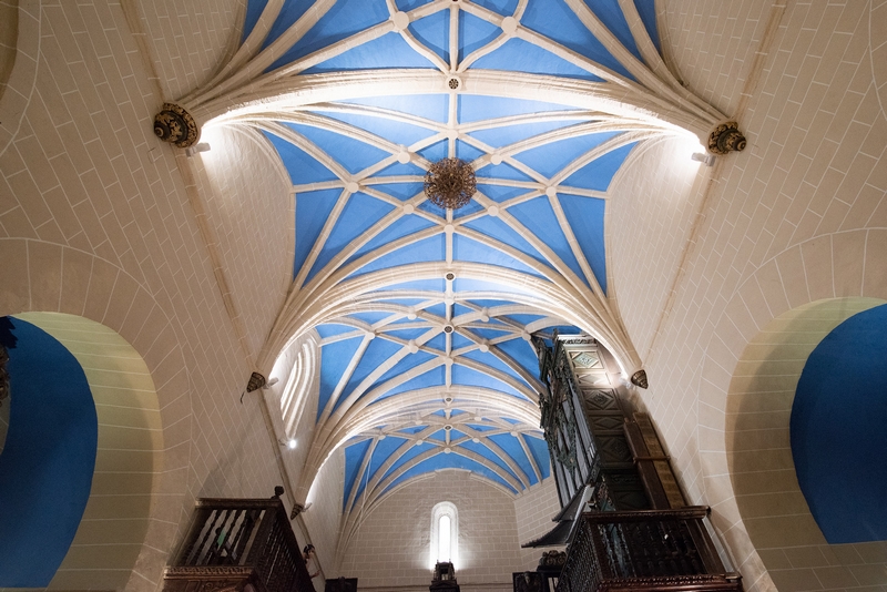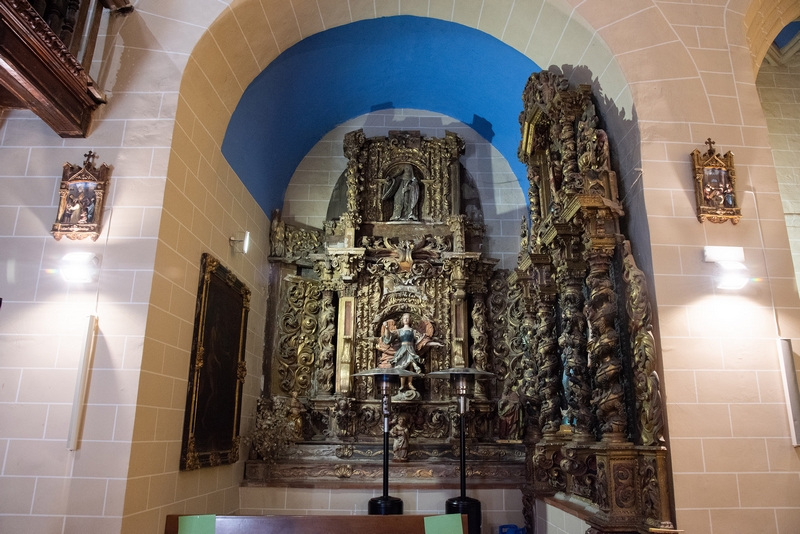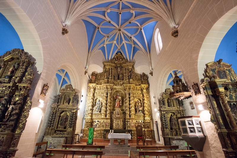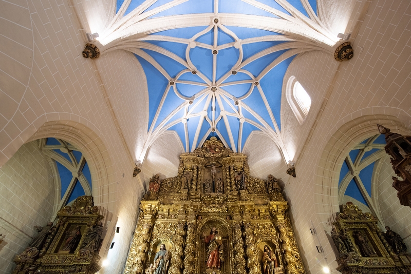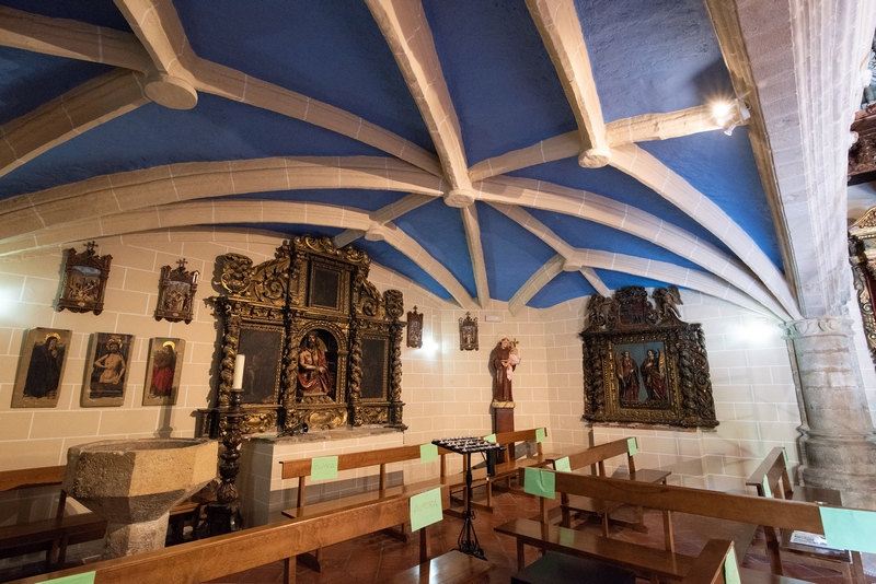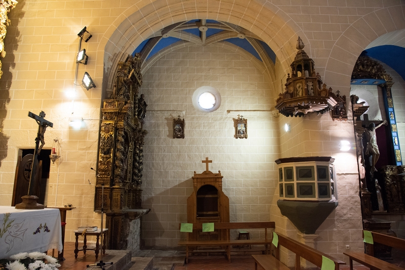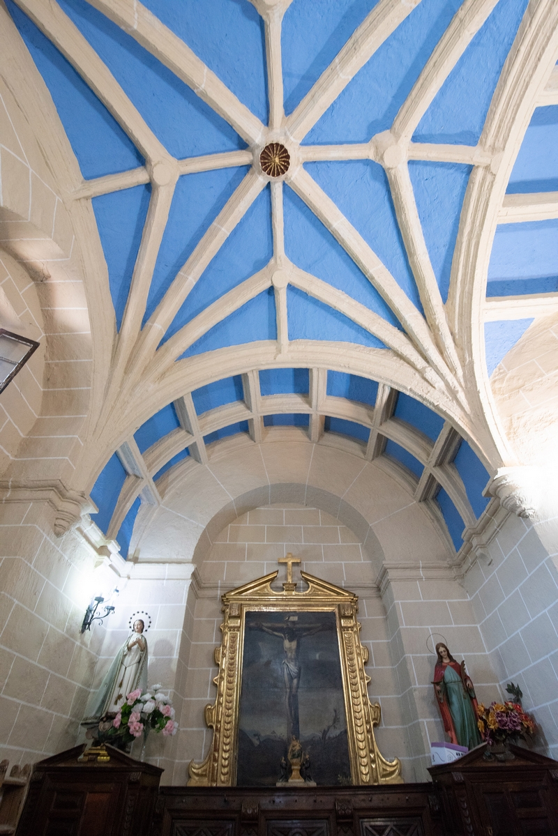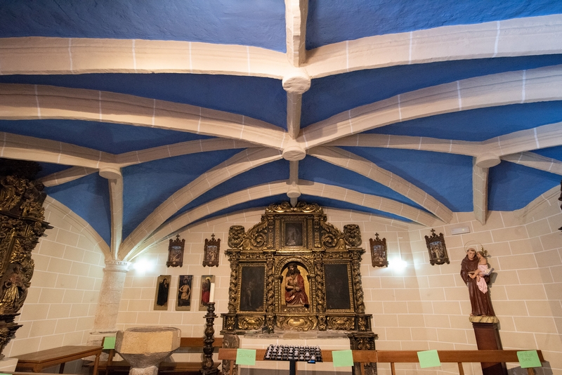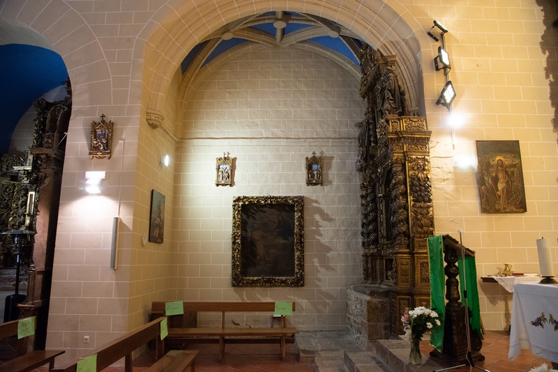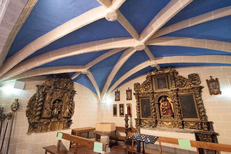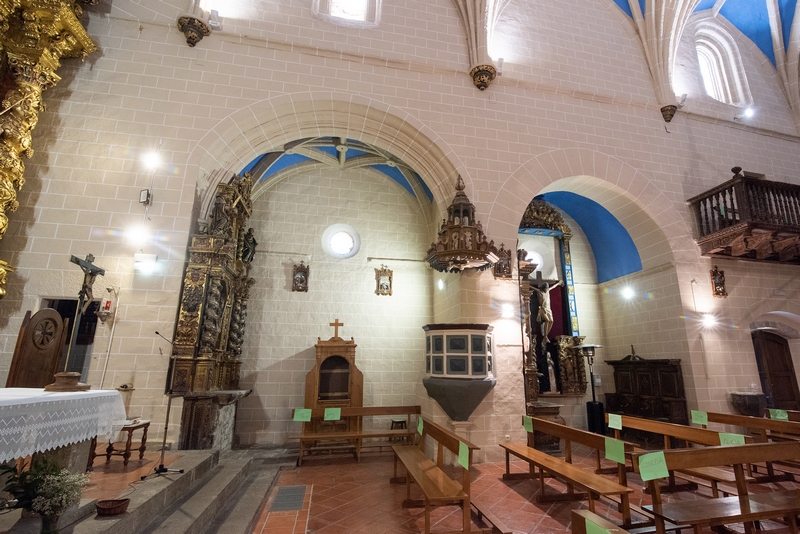 A ambos lados de la cabecera y del tramo contiguo de la nave se abren, por medio de grandes arcos de medio punto, capillas laterales cubiertas con bóveda de crucería estrellada.