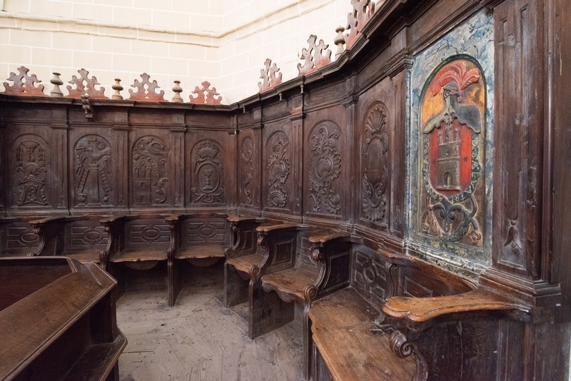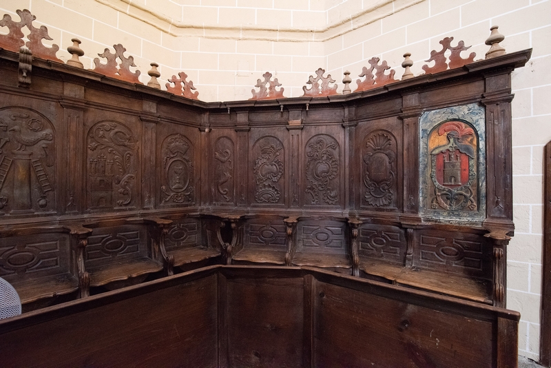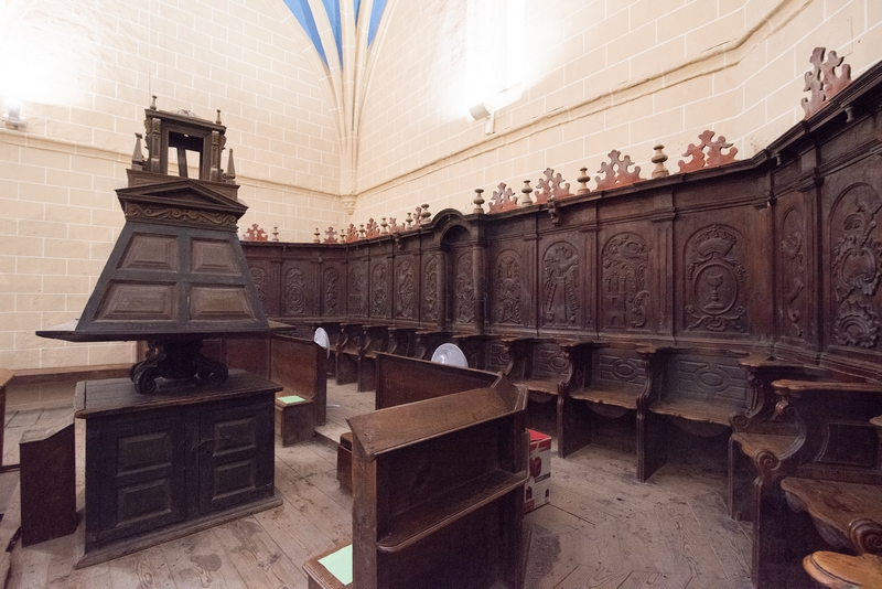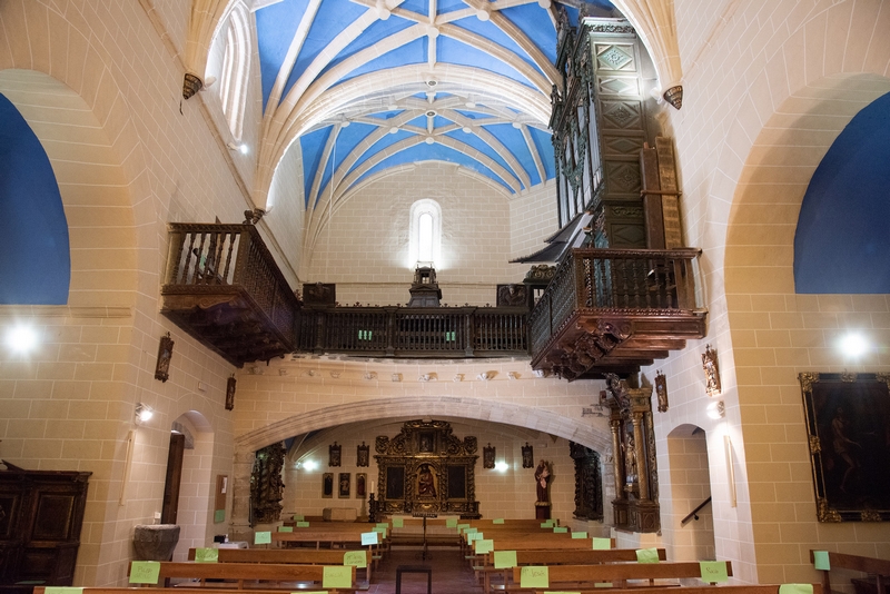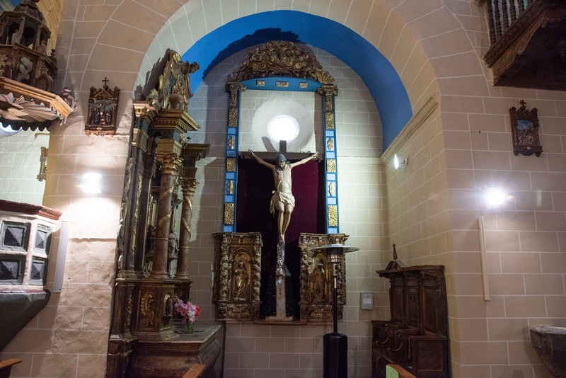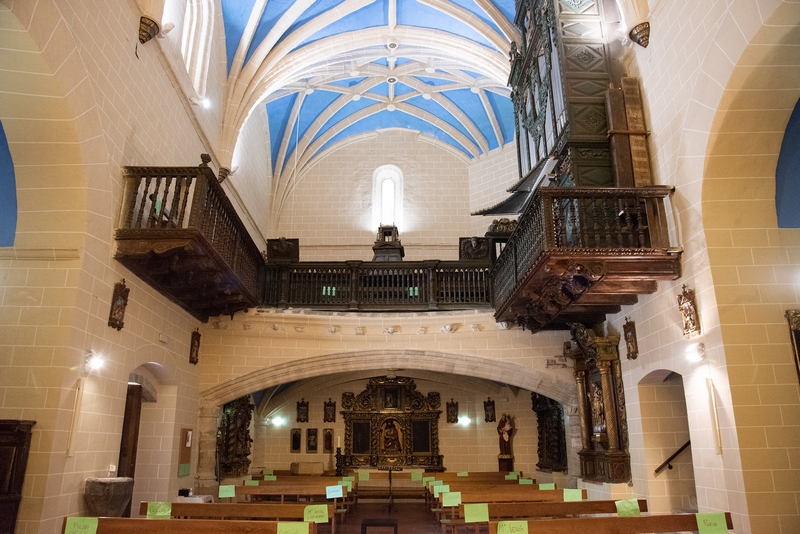 El coro, a los pies, se apoya sobre una arco rebajado.