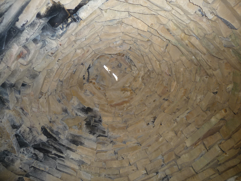 La cubierta arranca al interior a 1,4 m de altura, tiene falsas pechinas triangulares rebajadas en su arista inferior y es de falsa cúpula por aproximación de hiladas formada por 18 hiladas voladas que rematan en un orificio central tapado por una losa plana. Al exterior tiene forma cónica y tejado de losas. Presenta una pequeña chimenea lateral de salida de humos en un lado a 2,05 m de altura desde el interior.