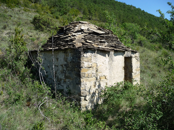 Caseta de cubierta cupulada cuya planta es cuadrada y exenta aunque ligeramente inserta en la ladera por su parte trasera.
