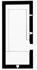 En el muro meridional se halla la puerta, originalmente de arco de herradura, similar a las de San Bartolomé de Gavín, y una ventana abocinada en arco de medio punto.