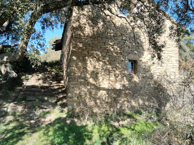 Las paredes son de mampostería con piezas trabajadas en las esquinas.