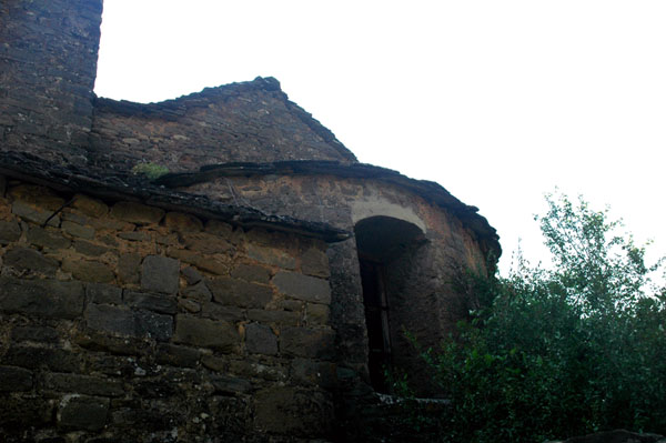 La puerta de acceso se abre en el lado sur, precedida por atrio abovedado. Posee arco de medio punto y chaflán en el intradós. Permanece adosada al atrio una caseta más moderna. A continuación del hastial oeste estuvo adosada la abadía, actualmente derribada. La sacristía se levanta junto al lado sur del ábside.