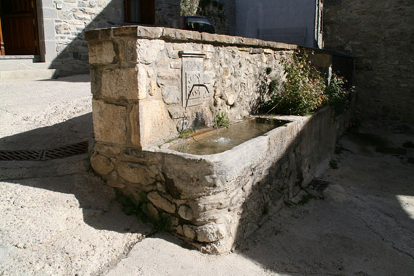 La fuente está apoyada a una pared de mampostería, construida a modo de muro de contención ante el desnivel del terreno, en la que hay una piedra trabajada de la que sale el caño. Esta piedra tiene esculpido un motivo que puede ser una flor, enmarcado en un círculo y con un cuadrado situado en el centro del caño que mana continuamente. La fuente tiene una inscripción que dice Lanuza 1995 M. Naverac.
