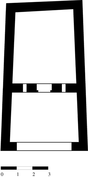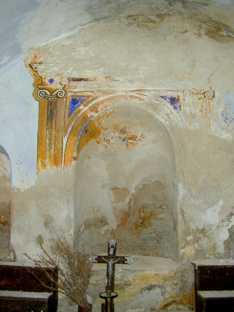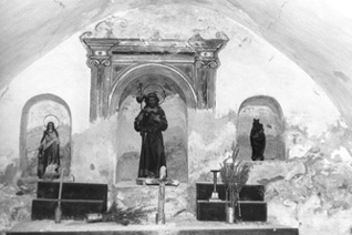 En el muro de cabecera hay tres nichos de tamaños desiguales.