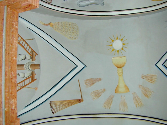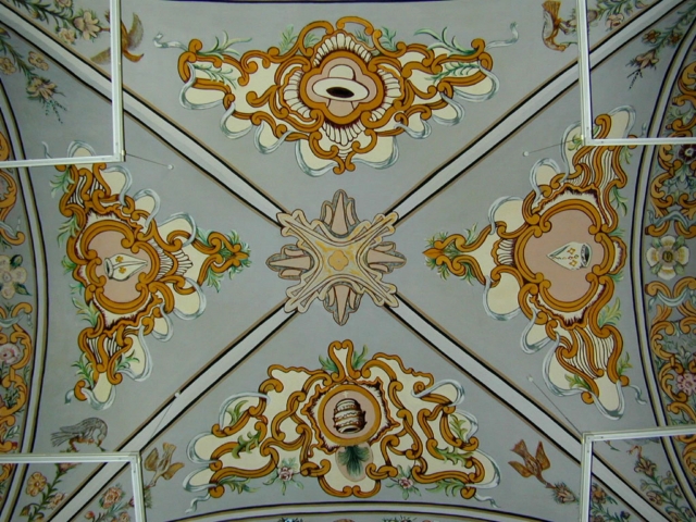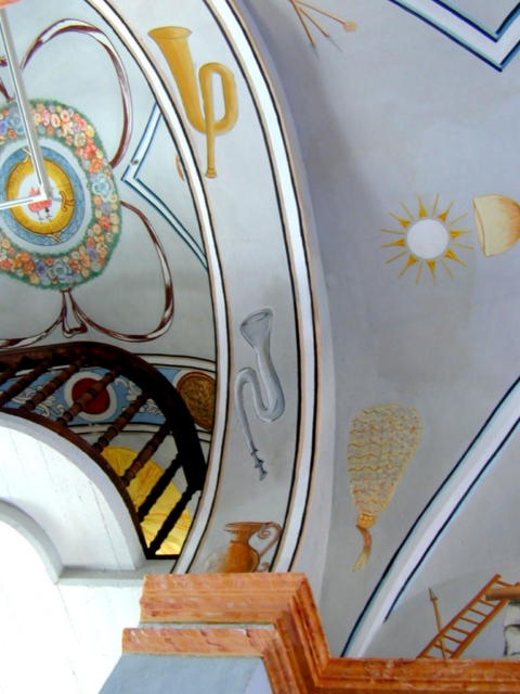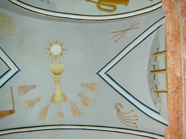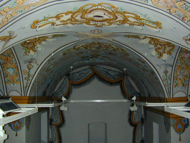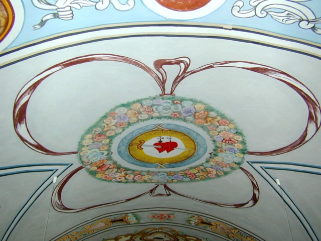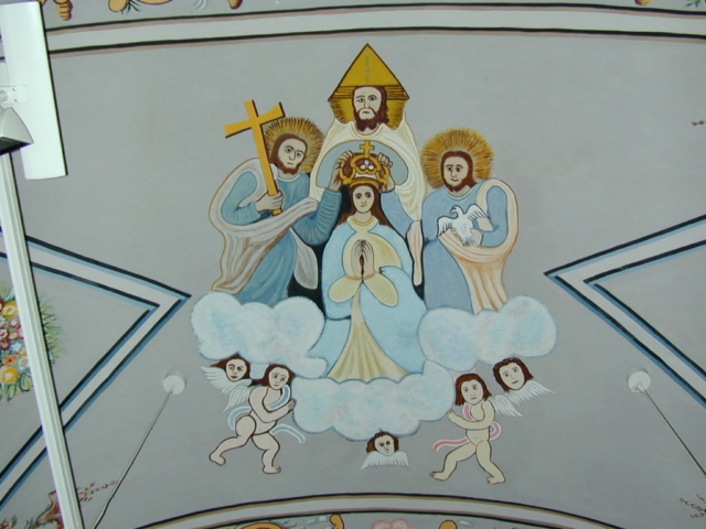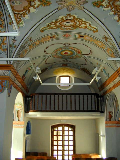 Todo el interior de la iglesia está decorado con pintura de carácter popular, de ejecución muy posterior a la realización de la iglesia, con motivos religiosos (pasión de Cristo), rocallas, cortinajes, aves, jarrones, etc. La más interesante es la pintura de la bóveda del crucero, con símbolos de dignidades eclesiásticas enmarcados por rocallas.