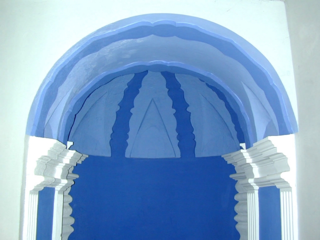 Hay una última capilla a los pies, en el lado sur, de planta semicircular precedida por un pequeño tramo recto cubierto con lunetos, utilizada originalmente como baptisterio. Se cubre con bóveda de cuarto de esfera con lunetos, sobre entablamento moldurado sostenido por pilastras acanaladas adosadas.