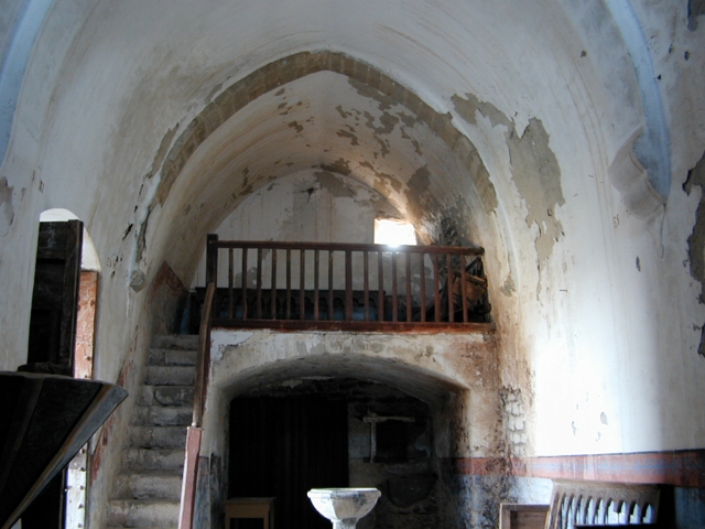 Se cubre la nave con bóveda de cañón apuntado, dividido por arcos fajones, igualmente apuntados, que apean en grandes ménsulas apenas sobresalientes del muro. El tramo preabsidial y las dos capillas se cubren con bóveda de cañón y el ábside con cuarto de esfera ligeramente apuntada.