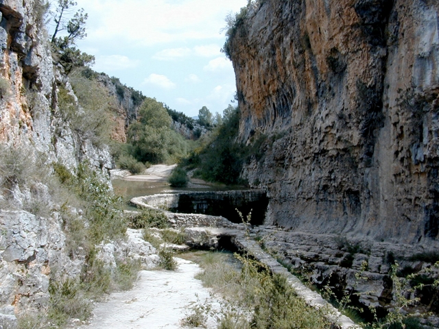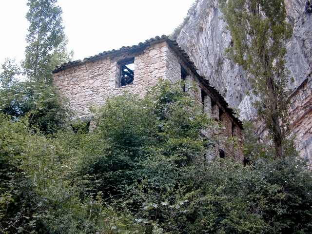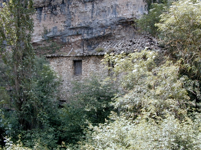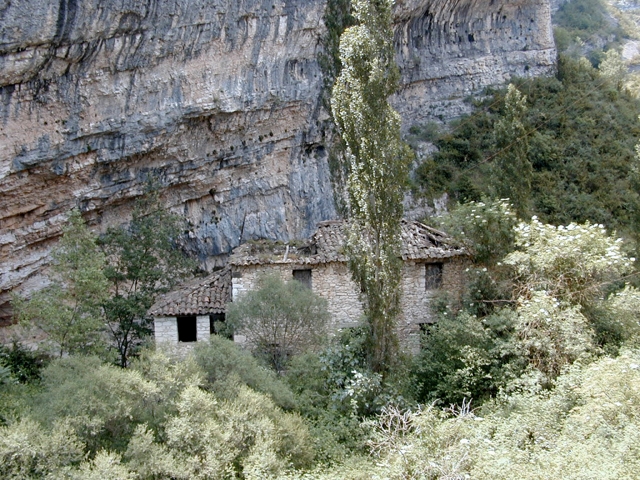 Situado junto al río Vero, bajo una pared de piedra ligeramente saliente, a modo de abrigo rocoso, que protege parcialmente al edificio.