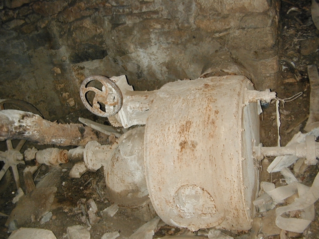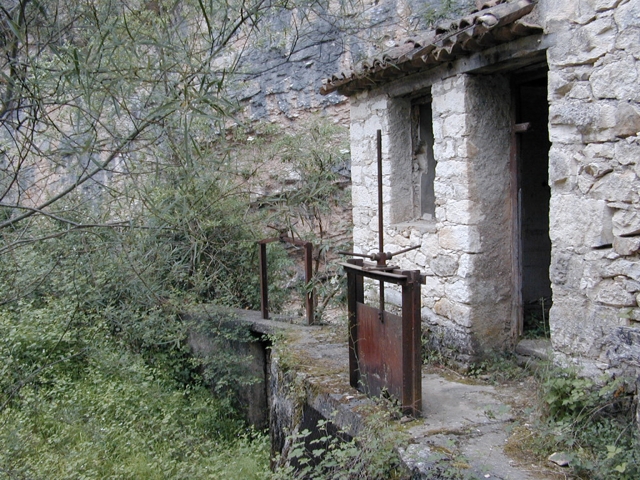 Está asociado a un azud de grandes dimensiones y todavía bien conservado situado aguas arriba, del que parte la acequia de alimentación del molino. Es una construcción bastante reciente, aunque ya en ruinas, de grandes dimensiones y dos pisos de altura (más el subterráneo de los cárcavos). Está construido en mampostería irregular, que se regulariza ligeramente en las esquinas, y cubierto con teja. Debió de usarse hasta tiempos relativamente recientes, ya que cuenta con maquinaria moderna (turbinas, etc.).