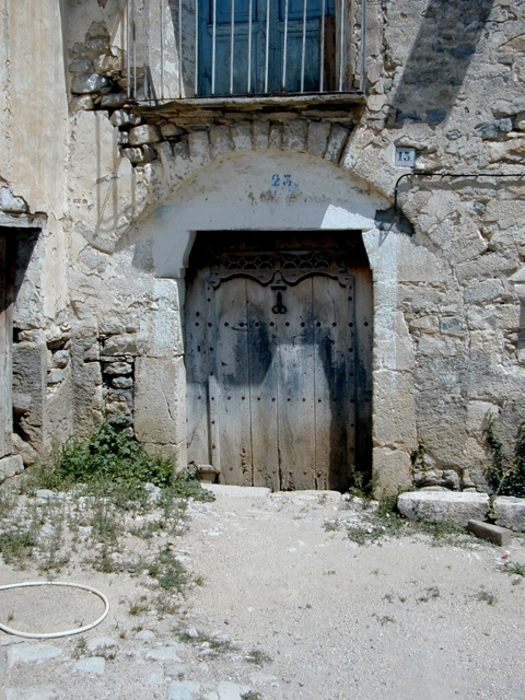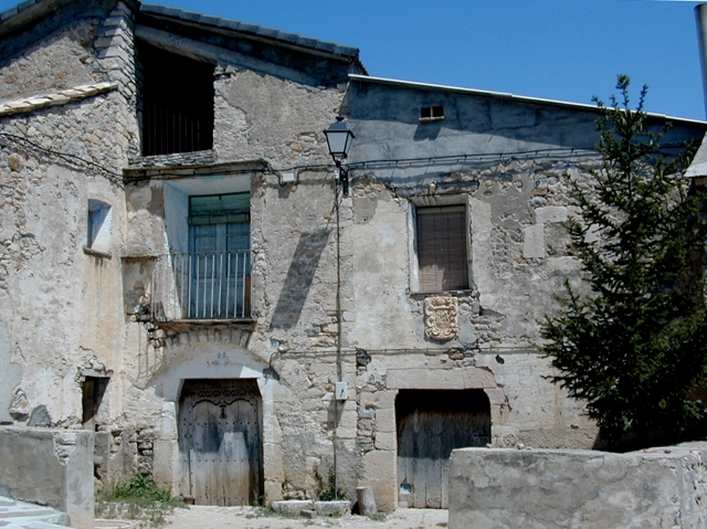 En realidad, solo quedan algunos elementos aislados interesantes: un escudo, una ventana cegada con jambas y dintel monolíticos, la puerta de las cuadras con dintel también monolítico de arenisca y la puerta principal. Esta es la más interesante.