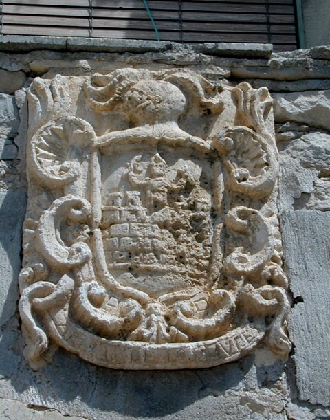 En cuanto al escudo, es de un único campo en el que se representa una figura humana tras una muralla con las manos alzadas; tiene timbre de hidalguía; está rodeado por lambrequines vegetales y, en la parte inferior, cartela con la inscripción ARMAS DE LOS FAURE.
