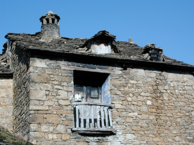 En una de las vertientes de la cubierta se alzan la lucarna y las dos chimeneas. La lucarna es de escasa altura, de mampostería, y cubre con tejadillo a dos aguas con cierta prolongación a modo de alero en los laterales. La chimenea del horno es cuadrangular, con escaso desarrollo vertical y se sitúa en uno de los extremos inferiores del tejado; debe corresponder a un horno de pan situado en la planta baja. La de la cocina se encuentra en la parte superior, cerca del cernillón. Está realizada en mampostería menuda; es cilíndrica, con cubierta cónica de escasa altura sostenida por piezas verticales de piedra.