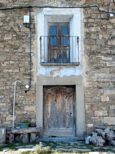 Sobre ella se sitúa un balcón, de cierto interés por la decoración que lo circunda, un motivo de sogueado en escayola, que se prolonga hacia abajo hasta alcanzar el dintel de la puerta.
