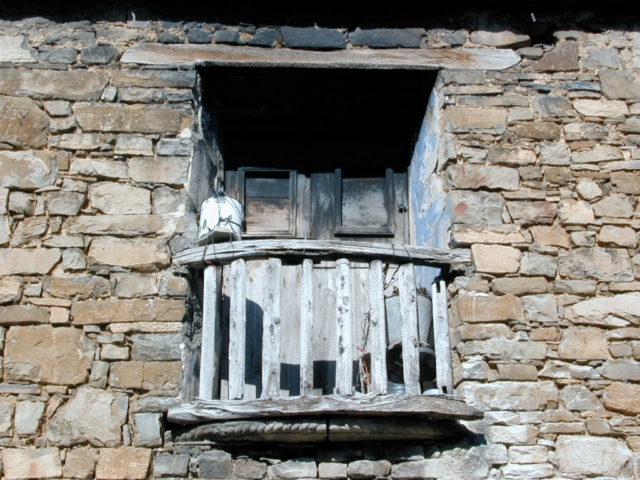 El segundo balcón presenta un aspecto más tradicional. Es también adintelado, con viga de madera, y tiene un piso semicircular con frente de sogueado, sobre el que apoya una madera curva que sirve como base a la balaustrada del mismo material. Conserva la carpintería original de la puerta, con dos pequeños ventanos como única abertura en la parte superior.