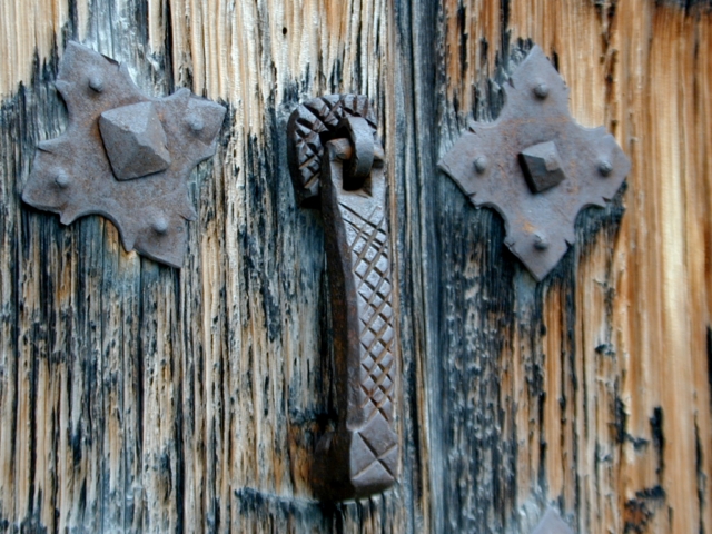 Junto a ella, hay una puerta de menor tamaño, adintelada con bloque monolítico de arenisca.