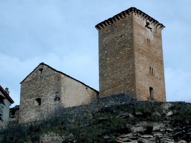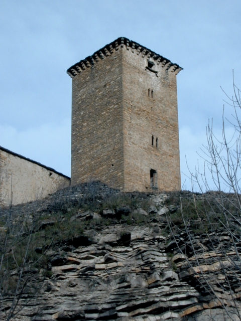 Asentada sobre un pequeño promontorio rocoso al extremo oeste del pueblo, domina la ribera del Ara hacia el sur.