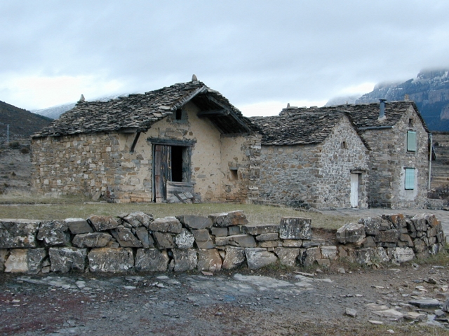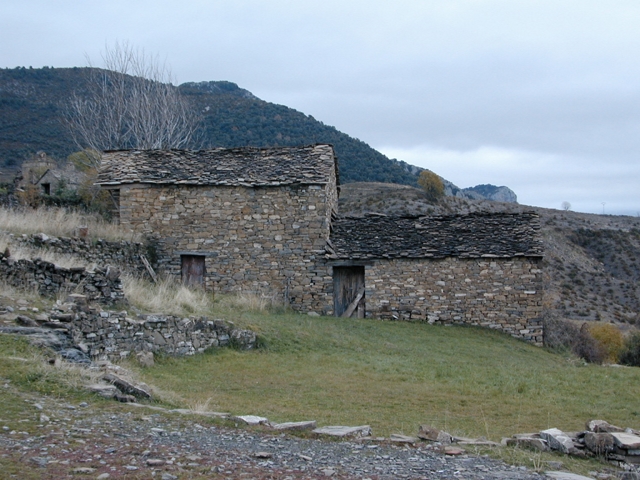 Al exterior se cubren a dos vertientes con tejado de losa muy volado en el frente, por lo que algunos de ellos presentan prolongación de uno de los muros laterales con la finalidad de soportar el alero. La techumbre se construye con armadura de parhilera compuesto por tres pares (uno en el centro y los otros dos sobre los lados cortos) y varios tirantes, que apoyan directamente sobre el muro, sin existencia de soleras; sí que cuentan con una lomera en el centro de cada vertiente. Sobre esta estructura se colocan bien palos delgados, frecuentemente de boj, o tablas encima de los cuales se disponen las losas bajo abundante barro.