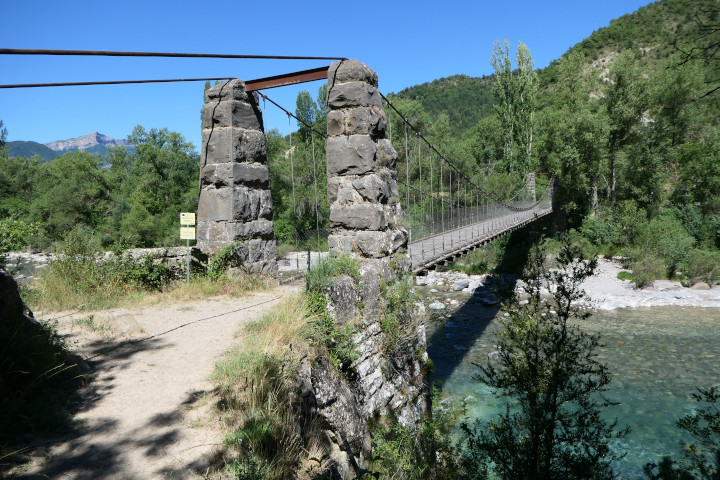 El actual puente colgante sustituye a una estructura similar arrasada por una crecida en 1942.
