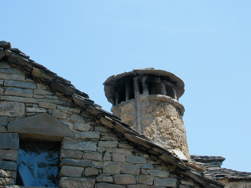 También destaca su chimenea. Levantada con piezas cúbicas de tosca y cerrada por cubierta cónica de losas, es cilíndrica, gruesa y de escasa altura.