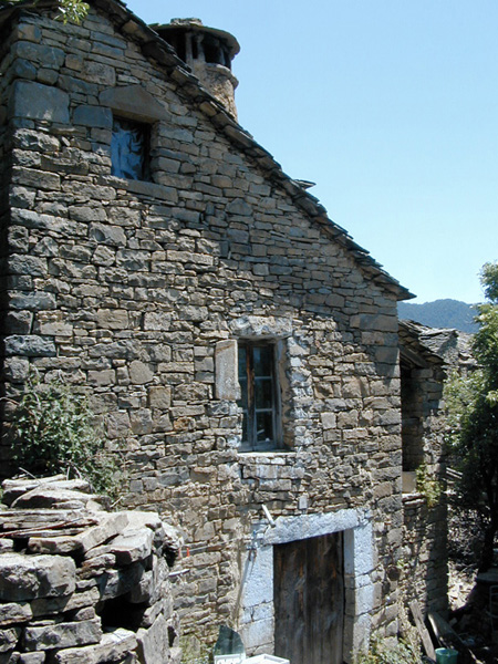 Como las restantes casas del núcleo, está elevada en mampostería de arenisca bastante regular (las piezas más grandes en la parte inferior, las menores en la zona alta de los paramentos) y sillares de gran tamaño en las esquinas, cubriendo con losa a dos aguas cuyo eje es perpendicular a la fachada.