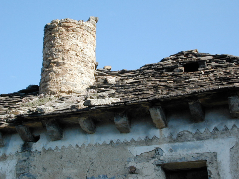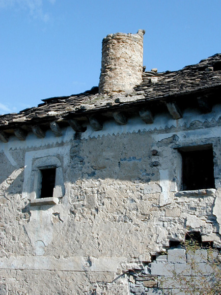También puede destacarse en una de las casas una chimenea cilíndrica de piezas de tosca, con remate cónico de losa, correspondiente a una cocina de campana, así como los canetes de piedra con las piezas talladas de forma convexa en su extremo, muy habituales en este valle. Los accesos al interior se encuentran tapiados.