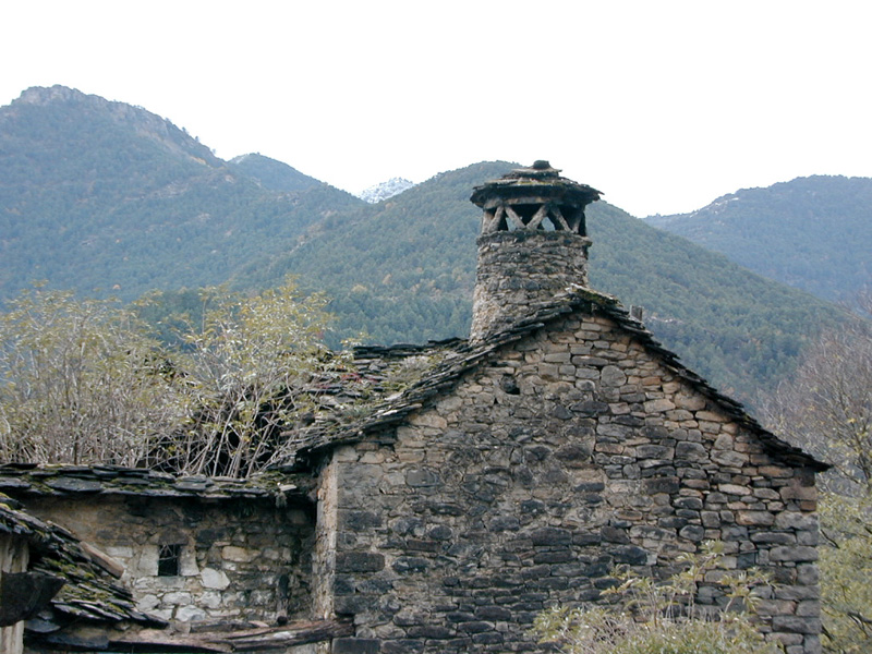 Destaca también la chimenea, correspondiente a la cocina situada en la parte posterior de la casa. Es de pequeñas piezas de tosca y cierra con cubierta cónica de losas, sobre salida de humos delimitada por piezas de tosca dispuestas en ángulo.