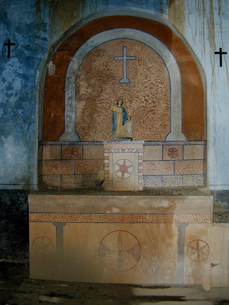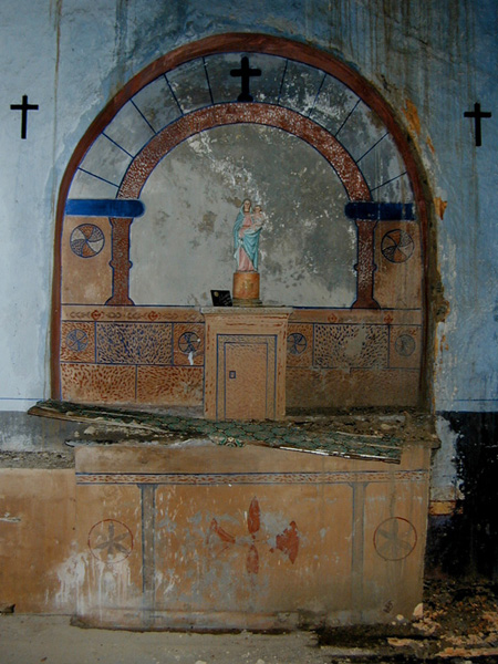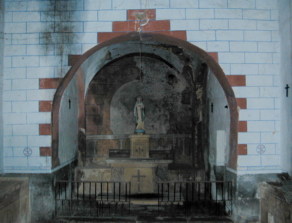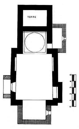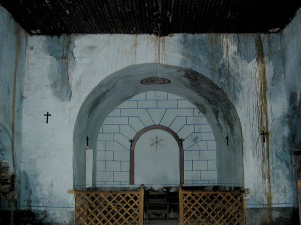 La cabecera se cubre con casquete semiesférico y la nave con cubierta plana de madera.