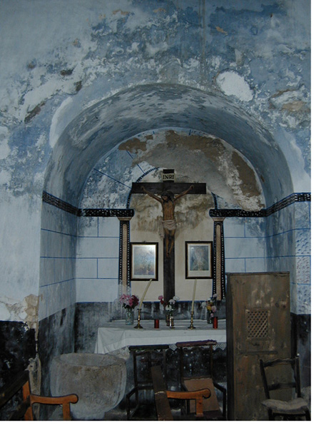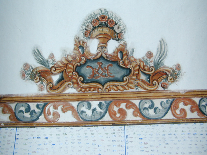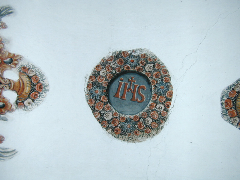 En la bóveda de la cabecera, decoración floral y anagramas de Jesús, María y José (siglo XVIII).