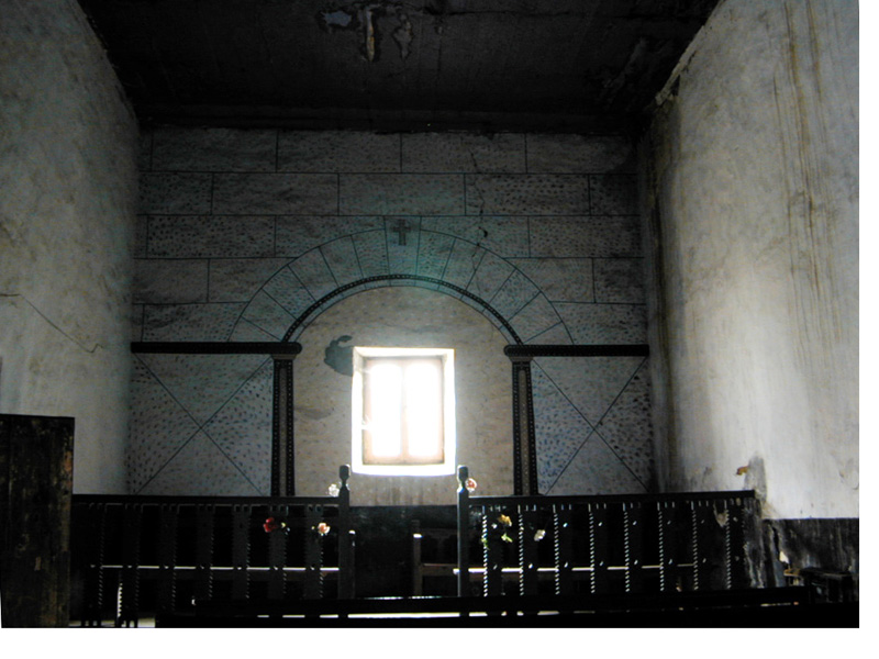 Hay fragmentos de decoración pictórica en el muro frontal del lado del Evangelio de la cabecera, ocultos parcialmente bajo el encalado (siglo XVI).
