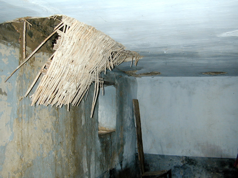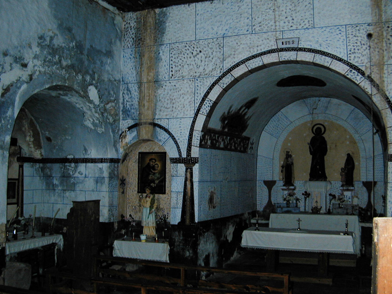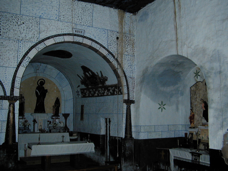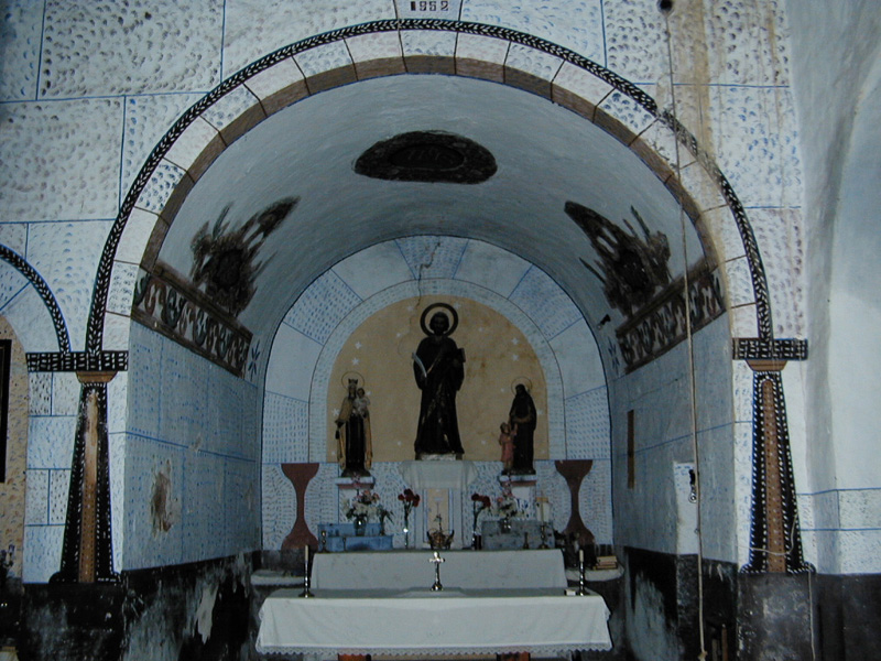 Tiene cubierta plana de madera en la nave, y bóvedas de medio cañón en cabecera y capillas.
