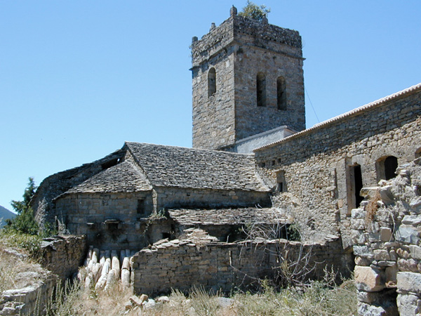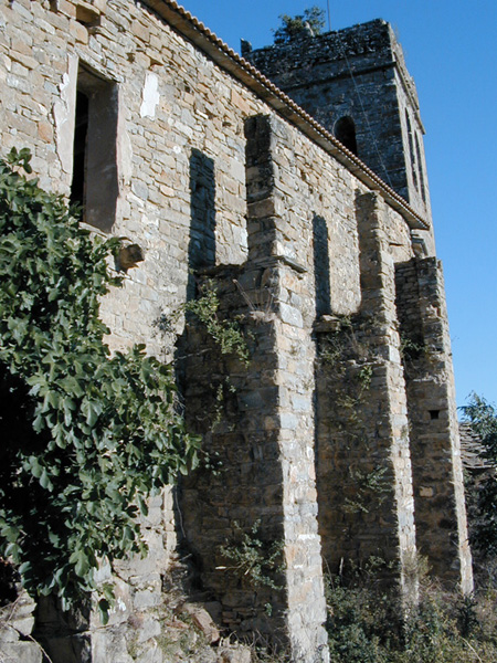 Iglesia románica del siglo XII de una sola nave y ábside semicircular, que es modificada durante el siglo XVI con la apertura de capillas laterales y con la construcción de una torre.