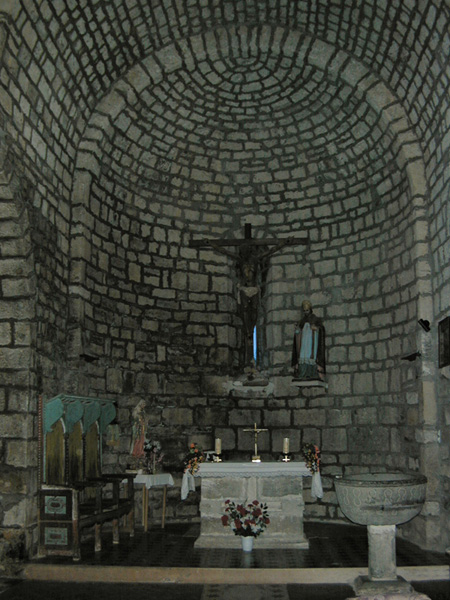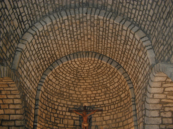 Cubre la cabecera con bóveda de horno y, la nave, con medio cañón dividido en tres tramos, siendo el preabsidial más bajo y estando los dos siguientes separados por arco fajón. La capilla del lado sur lo hace con cañón apuntado y, la opuesta, con medio cañón.