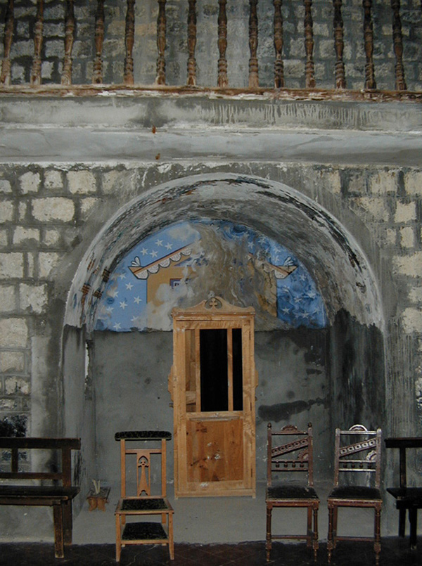 Construcción de una iglesia de nave única con cabecera semicircular.