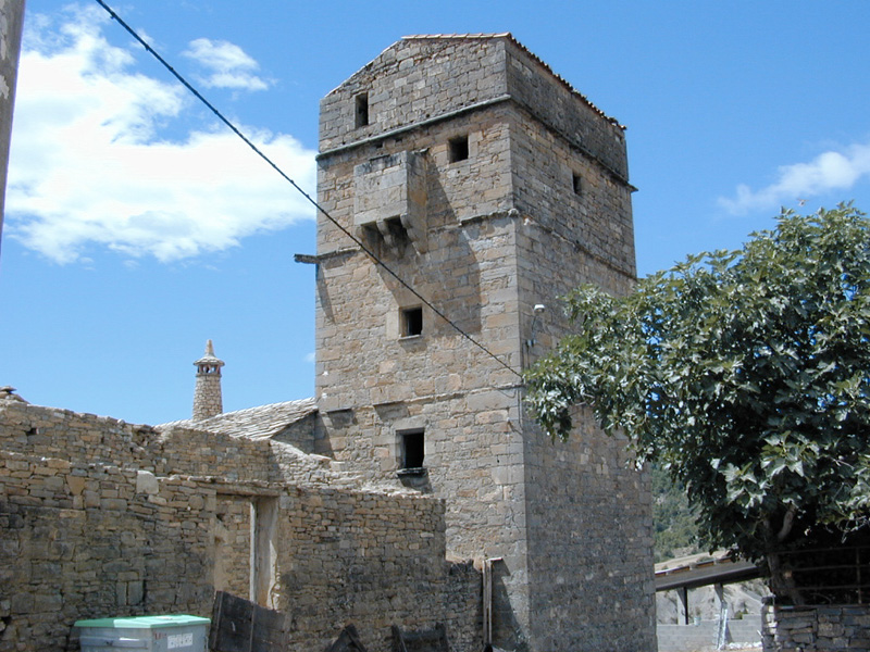 La entrada primitiva está a la altura del primer piso, es adintelada y sobre impostas. Sus plantas estaban abovedadas, aunque la inferior que albergaba la bodega fue habilitada para trujal, lo que supuso una transformación de la bóveda. Esta torre presenta numerosas aspilleras y ventanas de pequeñas dimensiones, algunas de ellas de asiento. Sobre la ventana del segundo piso, que mira al patio se observa un escudo donde se lee “ISH 1555 … Gorge Perez”. Esta fecha es una gran aportación para la datación del conjunto y la más antigua que aparece en el monumento. Desde el segundo piso de la torre se accede a la vivienda mediante una puerta adintelada que da al salón de la casa.La torre presenta la peculiaridad de que la comunicación de un piso a otro se realizaba mediante escalera de mano, para lo que se tuvo que perforar las bóvedas. En la actualidad se cubre con un tejado a dos aguas.