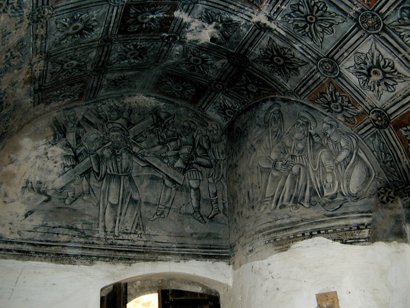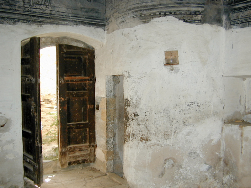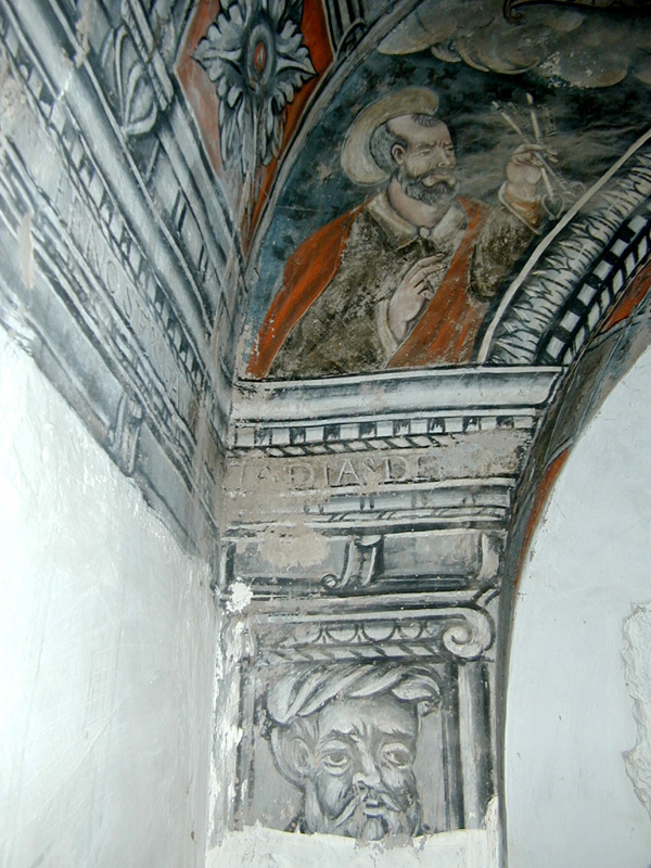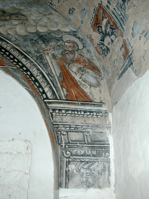 Esta puerta lleva a la capilla de San Pedro. En el batiente u hoja de la puerta lleva grabada la fecha de 1859. Interiormente la capilla tiene unas dimensiones de casi cinco metros por cuatro, el suelo, como en las plantas superiores, fue el tradicional de yeso endurecido al aceite. La capilla conserva la decoración mural pintada del siglo XVI que representa a ambos lados del altar los bustos de San Pedro y San Pablo, y en el muro de los pies, Jesús camino del Calvario. La capilla se cubre con bóveda de medio cañón pintada imitando casetones y en el centro se observa un escudo en forma de corazón, partido en faja y el superior en palo, con tres peras sínoples sobre oro. De la misma época es lo que queda del retablo, a los lados del mismo bajo los bustos de San Pedro y San Pablo hay sendas figuras, que aparentemente pueden ser la representación de los dueños de la casa, posiblemente Jorge Perez Tercero y su esposa, pues aparece el nombre de este caballero al pie de la decoración del lado del evangelio. En el ángulo sudeste de la capilla hay una escalera de caracol que asciende a los pisos de la torre y comunica con los de la vivienda. Cabe destacar, como dato a contemplar, que esta capilla, como el resto de la casa, fue saqueada en la guerra civil dejando daños irreparables. El primer piso de la torre se cubre con vigas de madera y presenta un vano adintelado y moldurado con asientos laterales orientado al este, es decir al patio; que incrusta bajo el alféizar una tronera, además se observan otras aspilleras de similar traza. Al nivel de esta primera planta se alteró la escalera de caracol para comunicar con el reposte y cocina de campana que da a la fachada principal y que se conservan en la actualidad. El segundo piso de la torre presenta techo abovedado de medio cañón liso con piedra de tosca, en esta planta se abren vanos de arco rebajado al interior y adintelado exteriormente, en los muros este y oeste. Se observan dos aspilleras en el muro norte, con dintel escalonado y emersión circular al exterior, y una tercera al sur, en gota. Exteriormente, en la cornisa que separa esta planta de la tercera, se observan gárgolas decorativas como cauce de salida para el agua de lluvia. El tercer piso se techa con un forjado de madera, orientando aspilleras al norte, oeste y sur, con orificio circular al exterior. Presenta ventanas adinteladas al norte oeste y este, y otra agrandada al sur; cuenta con un excelente matacán en el muro este, protegiendo la puerta de la capilla, apeado sobre tres grandes ménsulas de piedra y con aspilleras de salida circular. Sobre este piso existe un espacio bajo cubiertas o falsa, que se cubre con un tejado a doble vertiente, aunque según el profesor Antonio Naval Mas, esta torre tuvo un galería de madera, ya que en el paramento del este se abre una puerta por donde se accedería a esta galería, concebida como un cadalso con carpintería apoyada en la cornisa que rodea los cuatro paramentos. Con este supuesto remate, la torre noroeste de Casa Mur debía ser una de las de más imponentes de la zona.