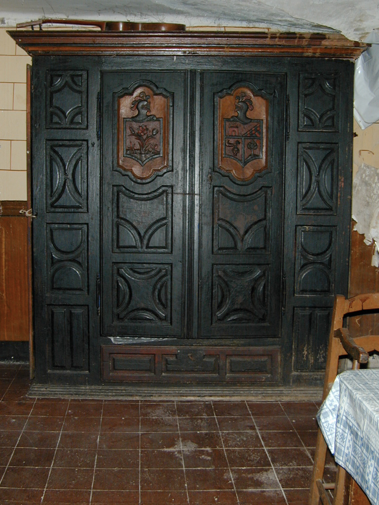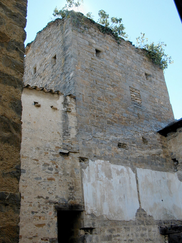 La casa propiamente dicha consta de tres plantas, realizadas en mampostería de arenisca, y cubre a cuatro aguas con losa de piedra. La fachada está muy alterada por la apertura de vanos, aunque las dos puertas existentes tienen cierto interés. En la parte central se abre la puerta principal de la casa, en arco de medio punto. A su derecha se encuentra una puerta de menor tamaño, adintelada, con un pico conopial en el centro; sobre ella se encuentra un pequeño escudo, sin particiones, con tres peras ocupando el campo (aunque esta puerta da acceso a una estancia utilizada como cuadra, puede ser la antigua puerta principal de la casa, pareciendo en todo caso más antigua que la situada a su lado). La puerta principal da acceso a un zaguán abovedado, en el que destaca el pavimento de cantos que dibujan sexafolias. Frente a ella se abre una puerta de piedra adintelada, con un escudo similar al descrito en la puerta de la cuadra, que da acceso a una sala abovedada con medio cañón en uno de cuyos muros se abre una ventana de asientos (esta sala, de características nobles es totalmente inhabitual en una planta ocupada habitualmente por dependencias secundarias). El resto de la planta baja está ocupado por dos cuadras abovedadas paralelas al zaguán y, al otro lado, la bodega. La planta principal está muy modificada y corresponde a la zona de vivienda. En la segunda planta se encuentra la falsa.