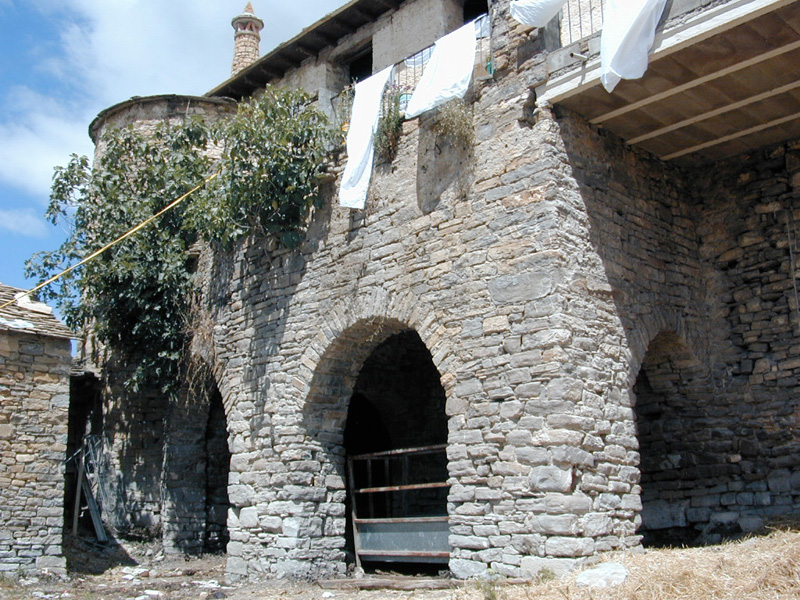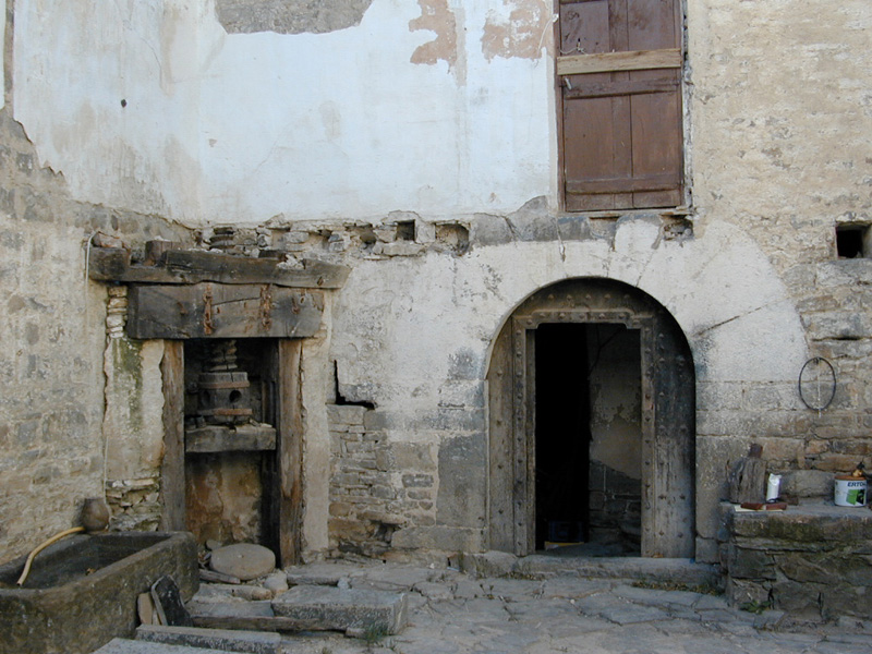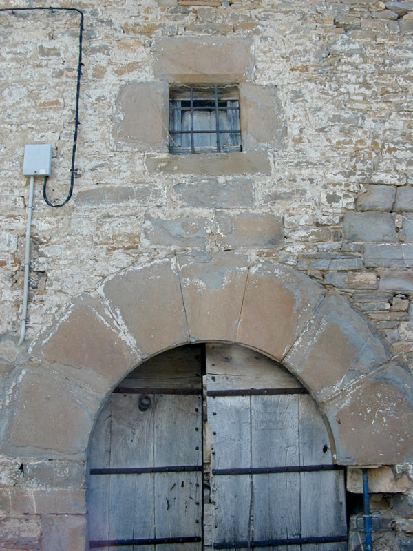 El cuerpo del conjunto se estructura en torno a un patio, con fachada principal al oeste. Está realizada con mampostería de gran tamaño que conserva aún parcialmente el revoco y en ella se abren abundantes vanos de factura moderna. Destaca la puerta, en gran arco de medio punto, en cuyo batiente se encuentra la inscripción: “ANO 1871 BIBA DJ MUR”. Sobre ella se abre una ventana con jambas y dintel monolíticos y biselados. Da paso a un zaguán de bóveda muy rebajada de lajas y posteriormente al patio que distribuye las diferentes dependencias del inmueble.