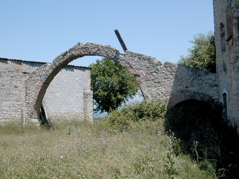 Se conserva solamente el lienzo sur, compuesto por una gran arcada en arco rebajado que arranca casi directamente del suelo y un fragmento de lienzo que la conecta con la fachada de la casa, en la que se abre un pequeño arco de medio punto de función incierta.