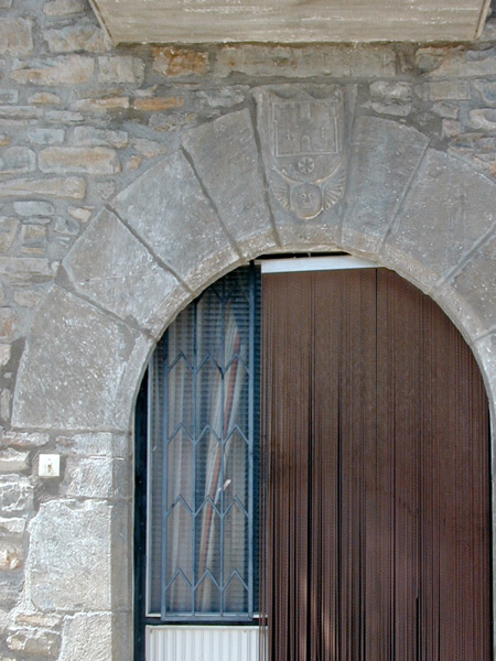 Casa muy restaurada, que como principales elementos de interés presenta los pajares adosados (véase ficha) y la puerta principal de la vivienda. Está es en arco de medio punto biselado, sobre jambas de sillería. Las dovelas son gruesas y relativamente cortas, siendo ligeramente más largas la clave y las dos contiguas (que componen un conjunto central ligeramente resaltado). En la clave central hay un escudete de talla muy plana, que apea en una cabeza alada de angelote en relieve. El escudo tiene el cuerpo unitario, en el que aparece una muralla con puerta y dos troneras y, bajo ella, una hexafolia enmarcada por un círculo.